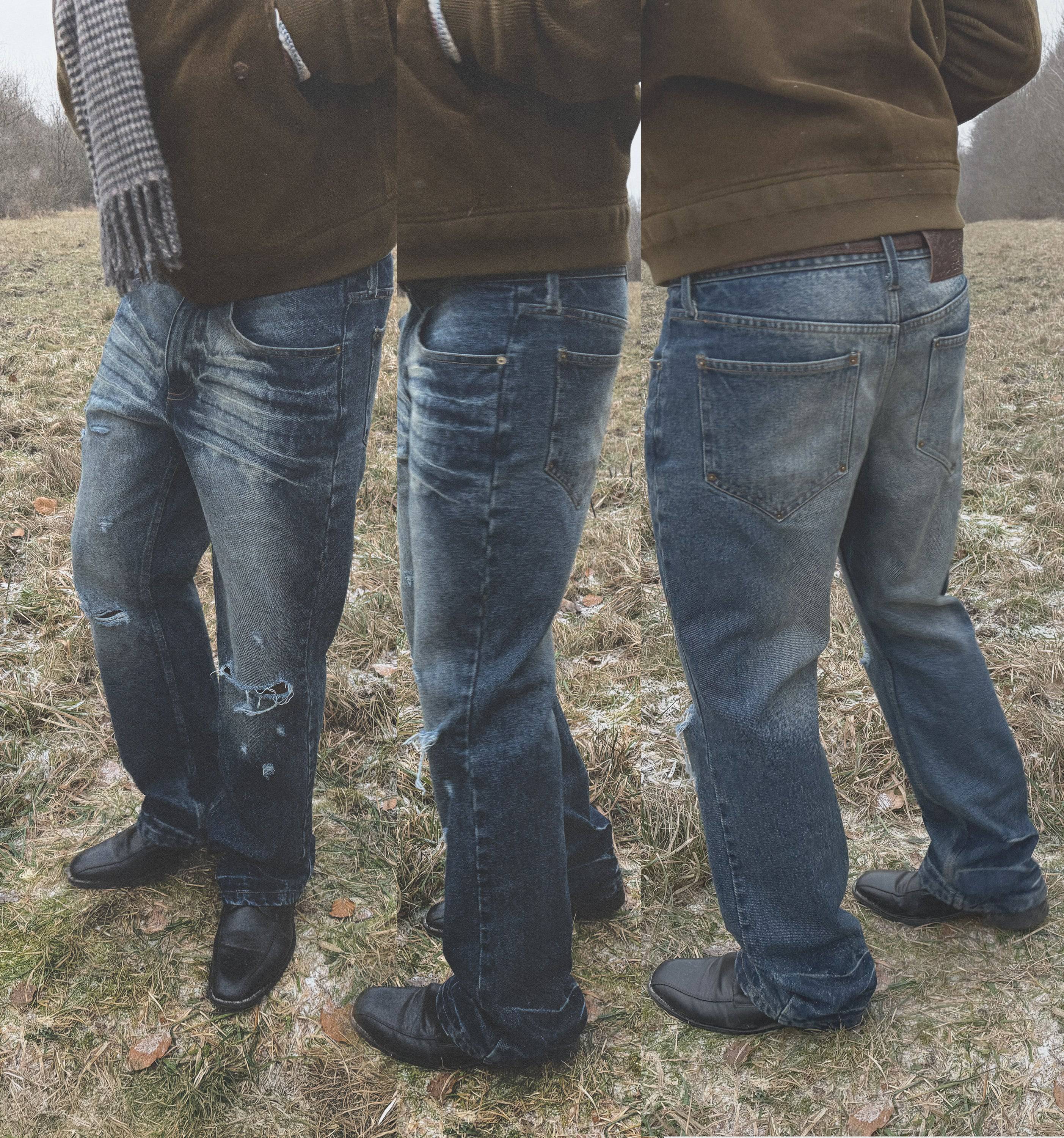 - Wash: Dark indigo base wash with honeycomb fading